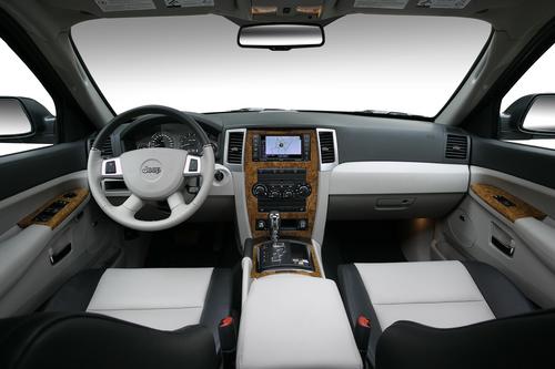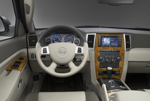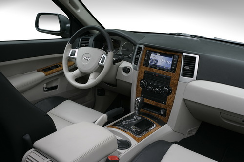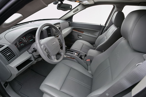 Внутри Гранд Чероки изменился гораздо сильнее – теперь его дизайн выдержан в европейском духе. Салон очень эргономичен, просторен и уютен. Двухцветные сиденья гармонируют с приборной панелью той же расцветки. Темный верх панели играет не только эстетическую, но и практическую роль – при ярком солнечном свете он отбрасывает меньше бликов. Подушки сидений стали более упругими. В оформлении салона использованы только качественные материалы. Машина комплектуется аудиосистемой Boston Acoustics с 6-ю динамиками, опционально можно заказать DVD-систему для задних пассажиров.