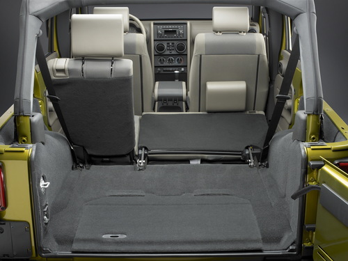 На заднем сиденье свободно усаживаются два взрослых пассажира. Задние сиденья можно сложить, чтобы увеличить объем багажного отсека. Длина грузового отсека, расположенного за спинками задних сидений, увеличена на 5 см. Дополнительное пространство за спинками задних сидений увеличивает объем багажного отделения Джип Вранглер почти вдвое.
